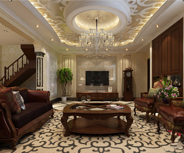 歐式風(fēng)格別墅裝修最大的特點是在造型上極其講究,給人的感覺端莊典雅、高貴華麗,具有濃厚的文化氣息。在家具選配上,一般采用寬大精美的家具,配以精致的雕刻,整體營造出一種華麗、高貴、溫馨的感覺。